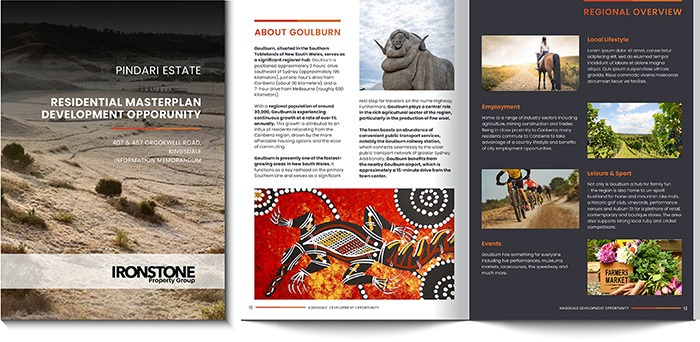 A few months later the client asked whether we could design a brochure based on the website branding, that they could reuse the design of, for more projects into the future. “Of course!” We said. They provided a basic mockup they had worked out, and we got to work with basically the same stepped approach as the website design. Brochure design tends to be a lot more unique from page to page than a website often is, so we initially designed the inner and outer front and back cover as well as the contents page. Once the client approved these we went on with the rest of the design.